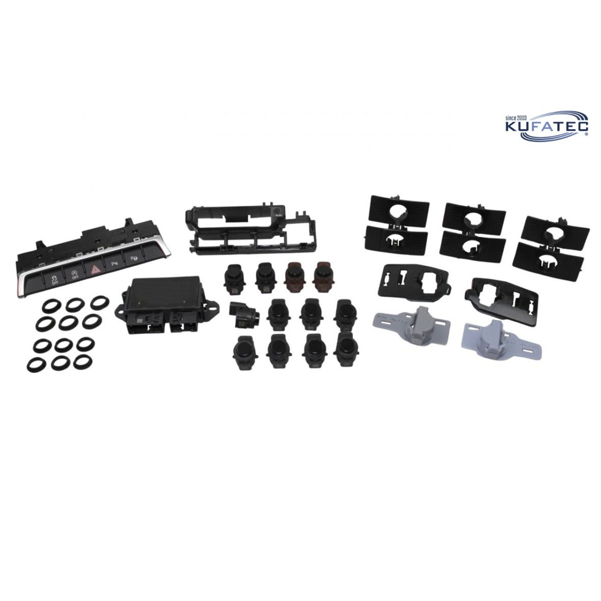 Set completo per l'installazione dell'assistente al parcheggio con visualizzazione perimetrale che cerca per mezzo di sensori ad ultrasuoni il posteggio idoneo lungo la carreggiata, calcola la traiettoria ideale ed esegue la manovra quasi automaticamente.