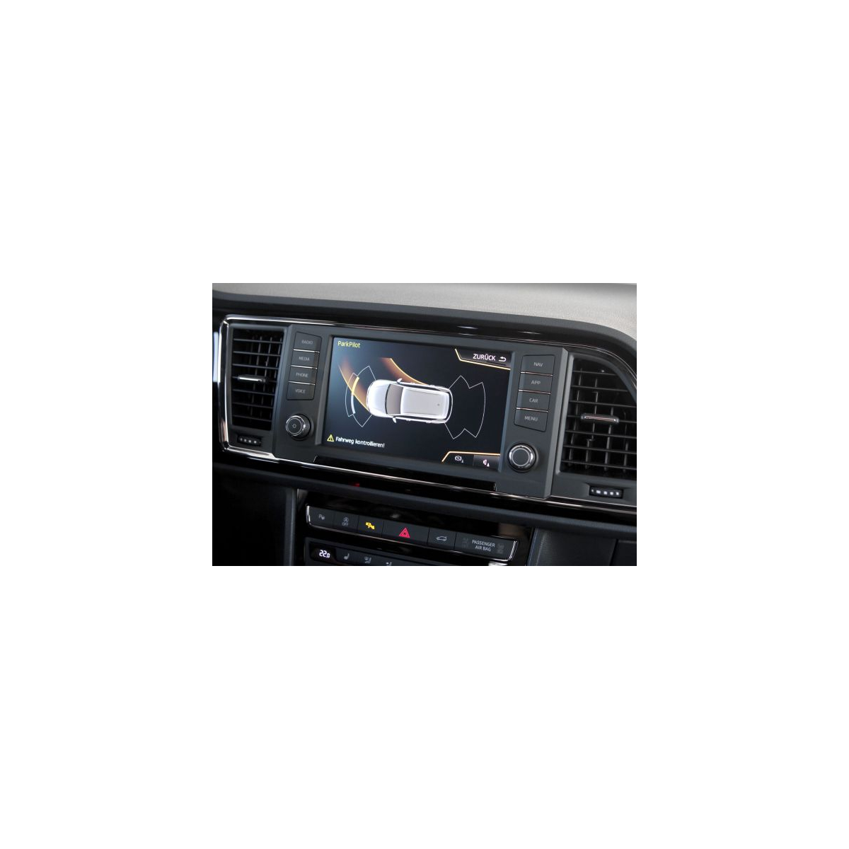 Set completo per l'installazione del sistema sensori di parcheggio anteriori e posteriori con segnalazione acustica della distanza ed anche visualizzazione grafica in combinazione con sistemi radio e navigazione Seat. Prodotto con varianti.