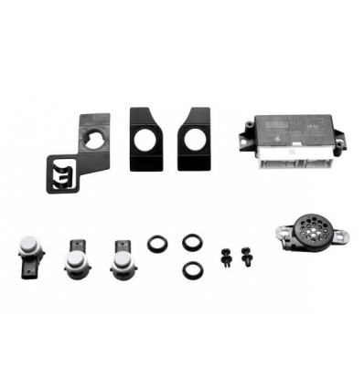 Kit retrofit completo per l'installazione del sistema sensori di parcheggio posteriori con segnalazione acustica della distanza e visualizzazione grafica su monitor di bordo della vettura.