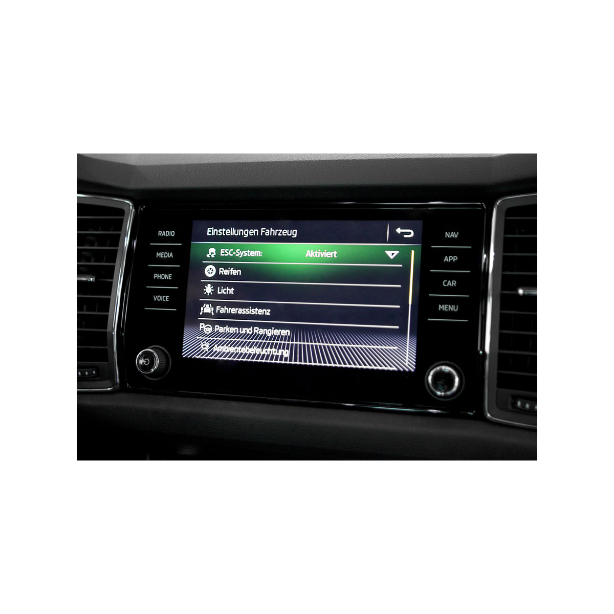 Set completo per l'installazione del sistema sensori di parcheggio anteriori e posteriori con segnalazione acustica della distanza ed anche visualizzazione grafica in combinazione con sistemi radio e navigazione Skoda.