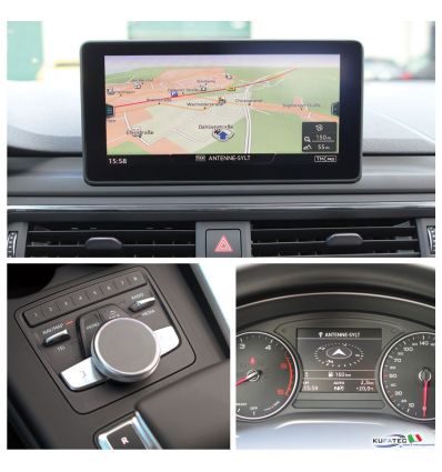 Retrofit del sistema MIB High, incl. navigazione HDD (mappe attive precaricate), SIM reader (Bluetooth car phone e Wi-Fi hotspot), interfaccia bluetooth, 2x slot SD HC (fino 32 GB), lettore singolo CD/DVD, display da 8,2" high resolution ed unità di comando touchpad. Kit assemblato con componenti ricondizionati, garanzia 24 mesi.