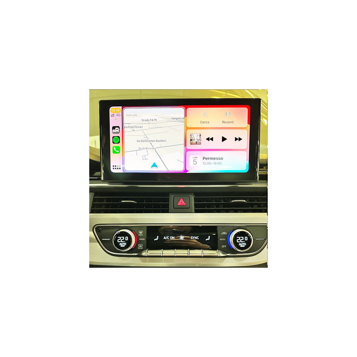 Postmontaggio del sistema CarPlay, Android Auto e Mirrorlink per Audi con infotainment MIB3 e display da 10,1". Ingressi per Rear view camera (linee guida dinamiche e supporto grafica PDC), Front view Camera e USB multimedia playback.