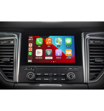 Postmontaggio del sistema CarPlay, Android Auto e Mirrorlink per Porsche PCM 4.0. Ingressi per Rear view camera (linee guida dinamiche e supporto grafica PDC), Front view Camera e USB multimedia playback.