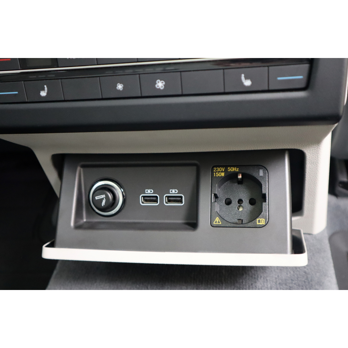 Set completo per l'installazione di una presa 230 Volt nella console centrale posteriore per VW Touareg CR.