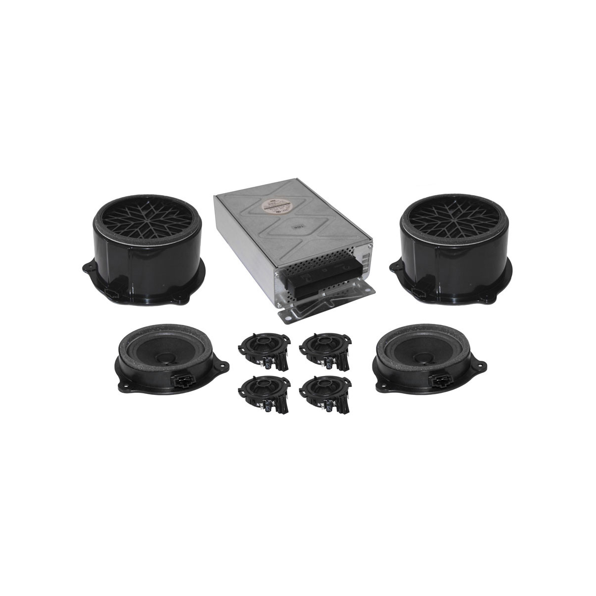 Kit retrofit per l'upgrade da sistema Sound Basic al sistema DSP Sounsystem con amplificatore esterno e 10 altoparlanti attivi.