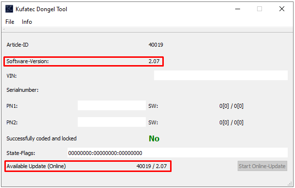 Con lo strumento KUFATEC Dongle puoi controllare facilmente e rapidamente se il dongle è già stato attivato o è ancora inutilizzato. Inoltre, puoi installare gli aggiornamenti in completa autonomia.