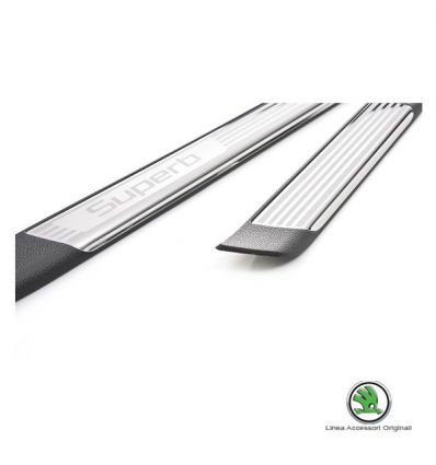 Gli eleganti listelli in acciaio con scritta Superb alla base delle portiere attirano subito lo sguardo e completano il look personalizzato della tua Superb.